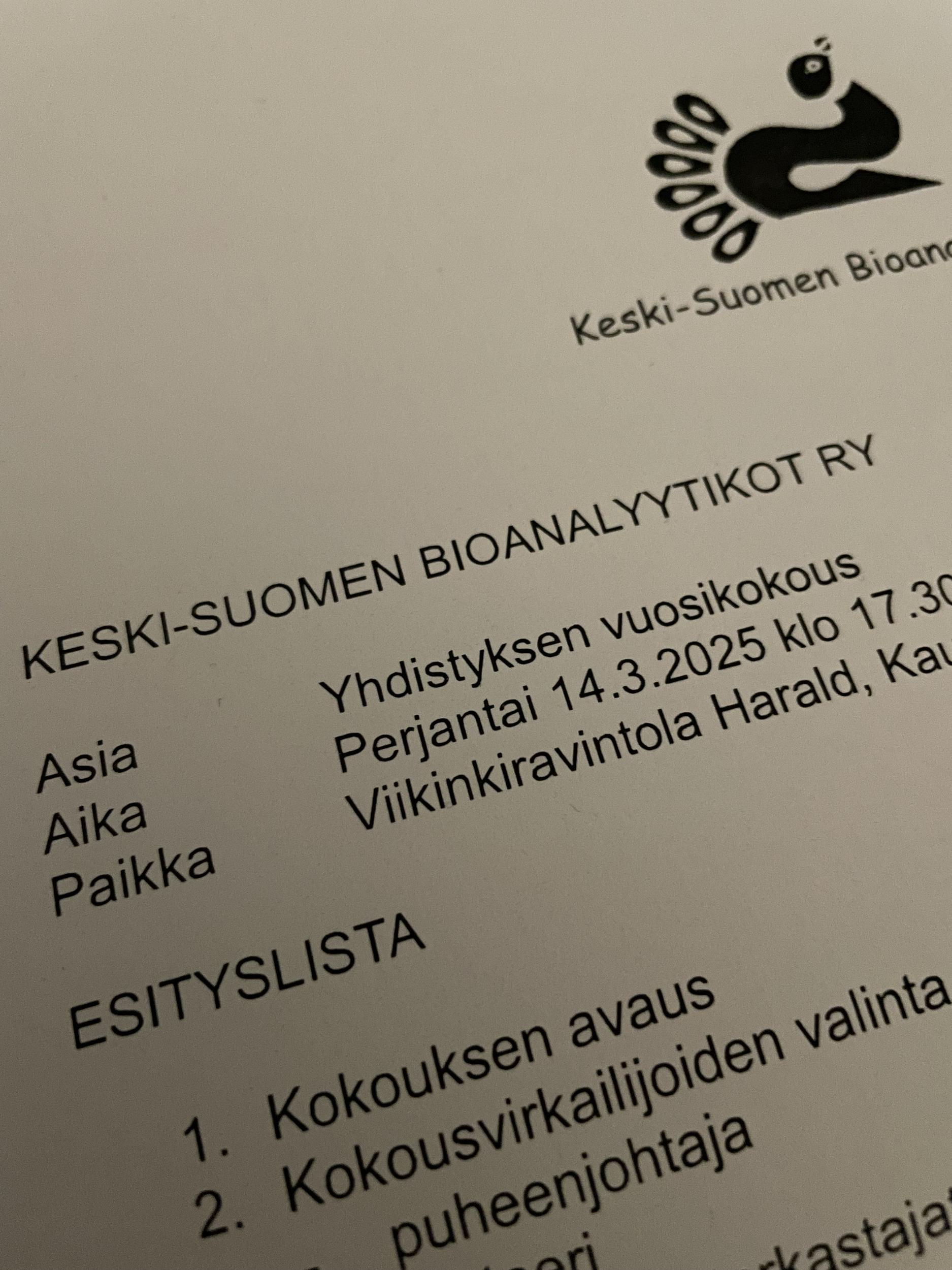 Keski-Suomen Bioanalyytikot ry:n vuosikokous on perinteisesti pidetty maaliskuussa. Kokoukseen tervetulleita ovat kaikki Keski-Suomen Bioanalyytikot ry:n jäsenet, kokouskutsu lähetetään jäsenille sähköpostilla sekä esitetään Facebook-sivulla, kotivuilla ja Bioanalyytikko-lehdessä.